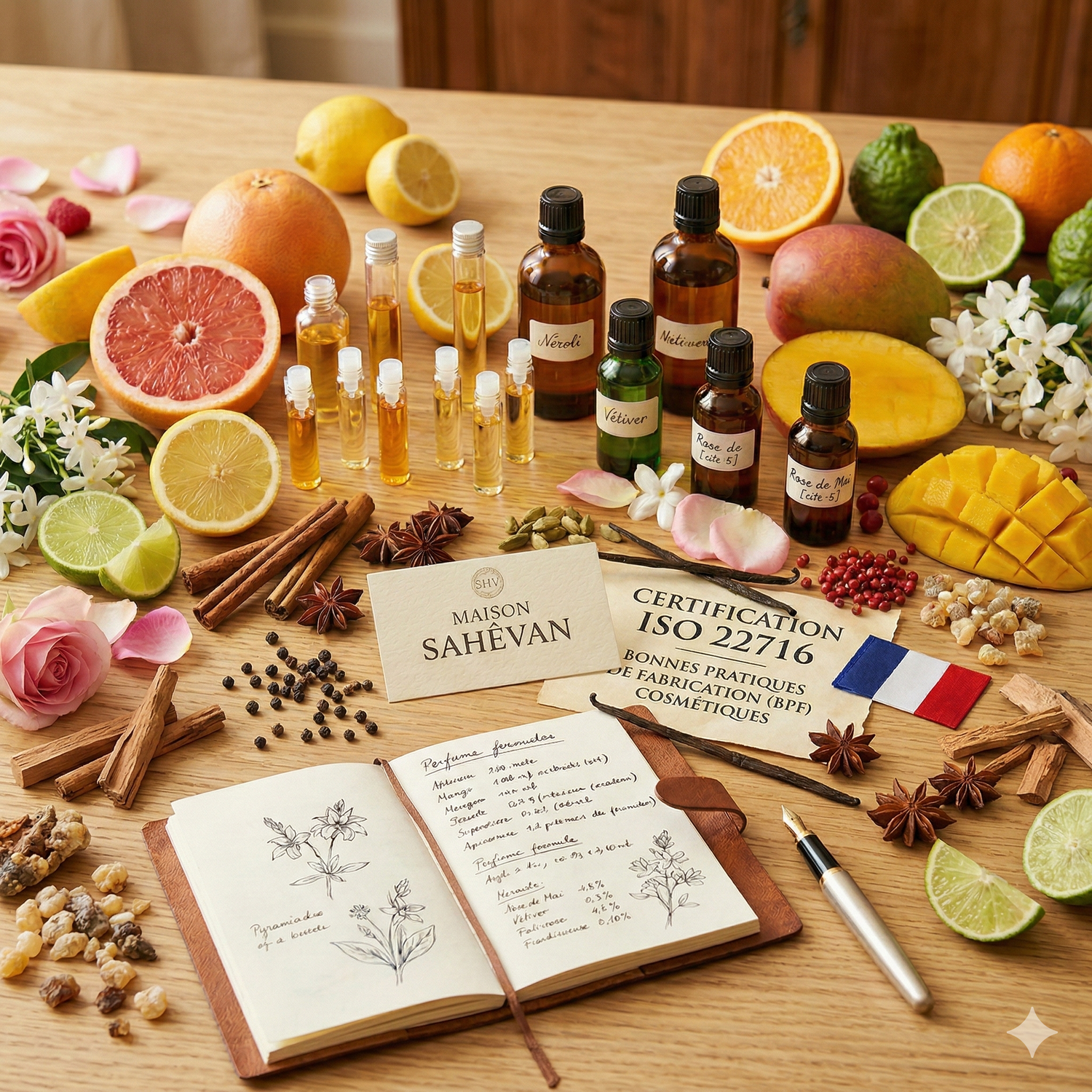 La création de nos parfums s'appuie sur une exigence de sécurité absolue. Conformément au Règlement Européen (CE) n° 1223/2009, chaque fragrance de notre collection fait l'objet d'un contrôle rigoureux avant sa mise sur le marché.